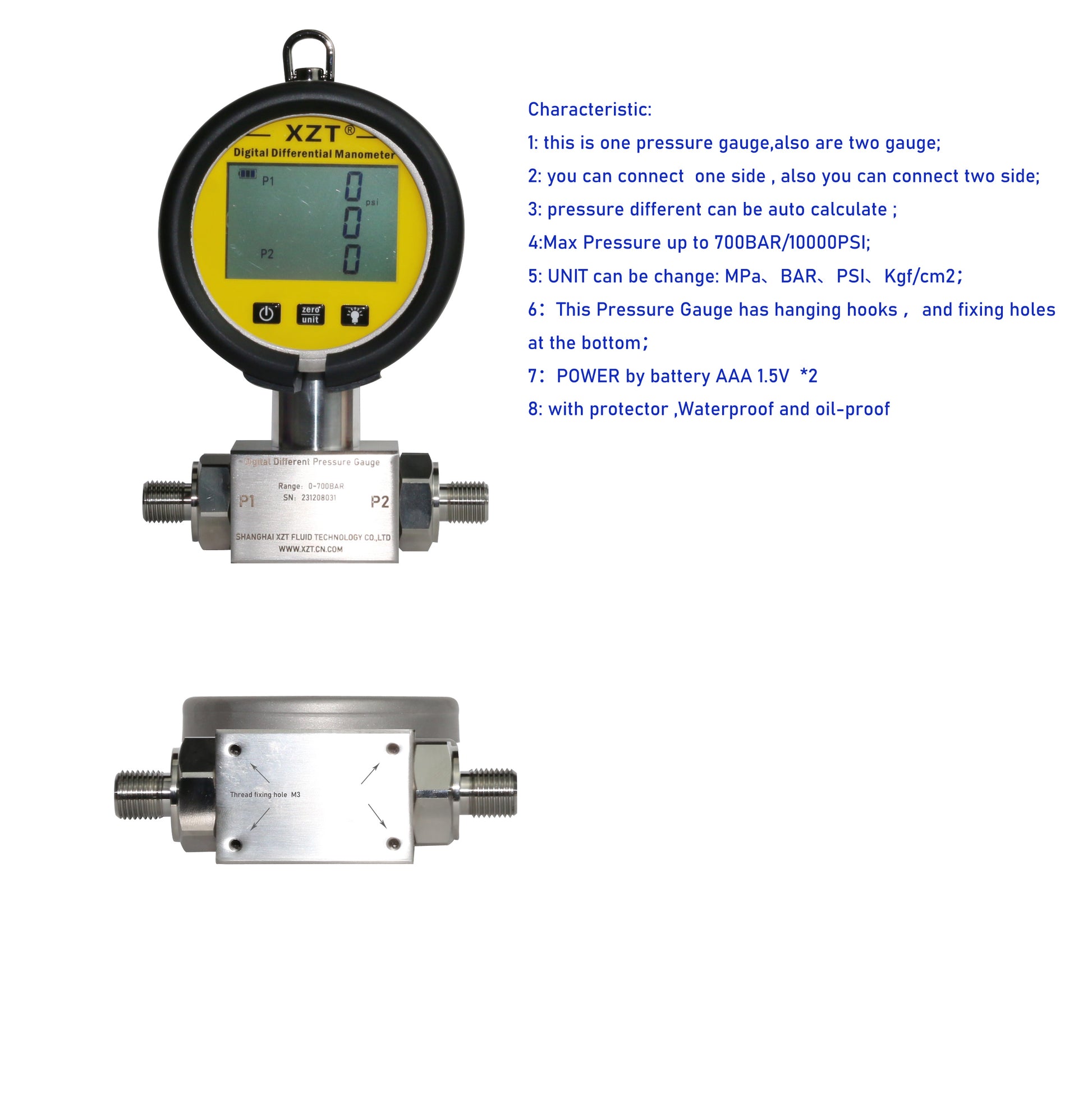Free Shipping XZT 3.15" 0~700BAR/10000 PSI Digital Different Hydraulic Pressure Gauge with Red Protector,Pressure Manometer, Pressure Sensor Connector